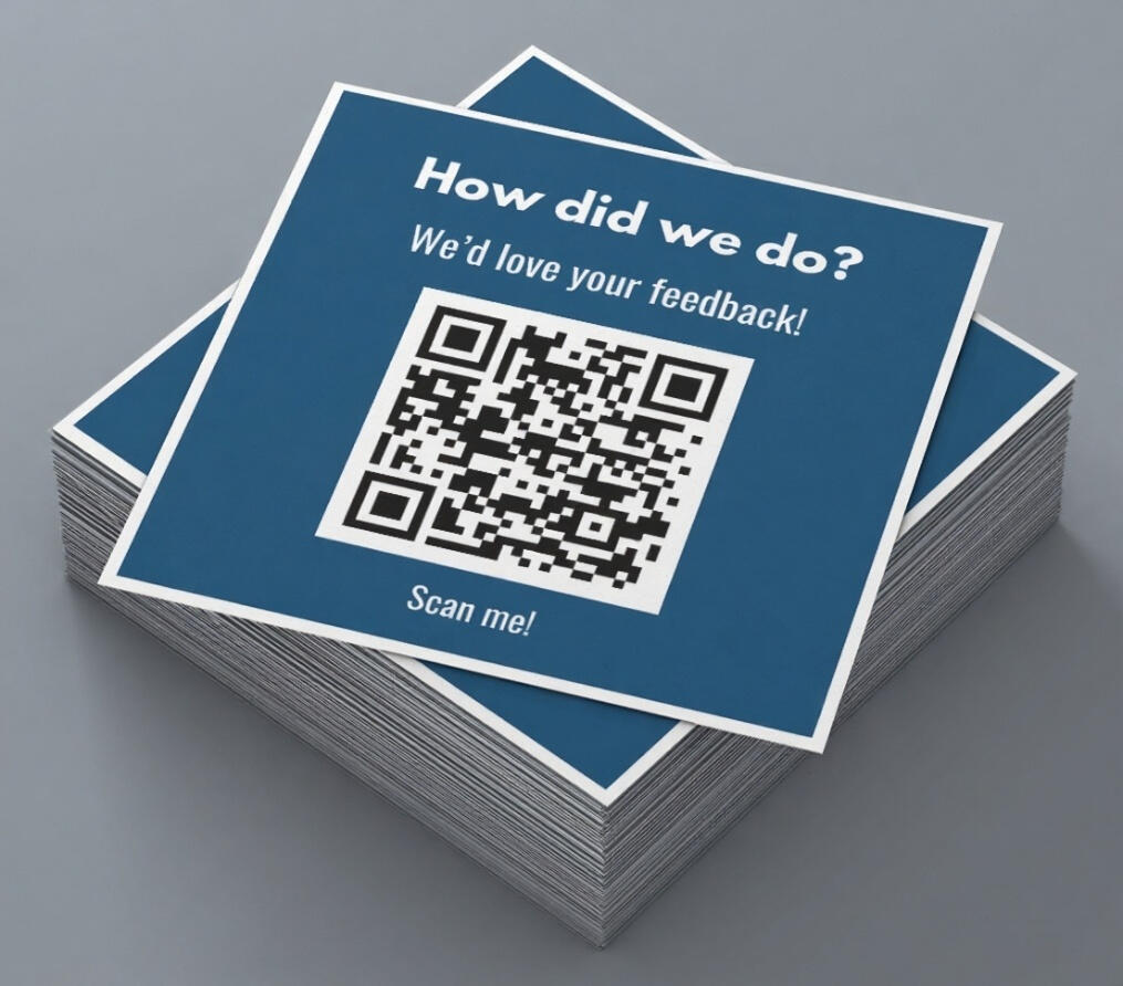 Get 50% off with our annual plan — plus 500 free feedbacko cards every year. Each QR-coded card sends clients straight to your branded feedback page with one scan.